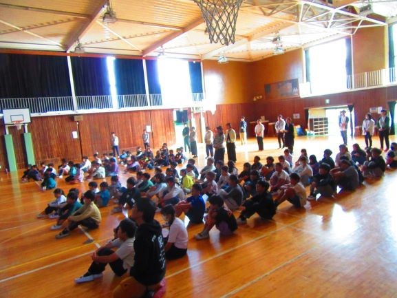 明日から学校を代表して修学旅行に行く6年生が出発式をしました。