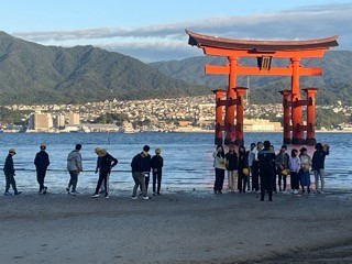 修学旅行9 公開日 2025/10/23 更新日 2025/10/23 校長より 2日目が始まりました。昨晩、割と早くに寝たことで子どもたちは元気です。朝から国宝 厳島神社にお参りに行き、その後朝食をいただきました。この後は水族館に行き、商店街でお土産を買います。 +2