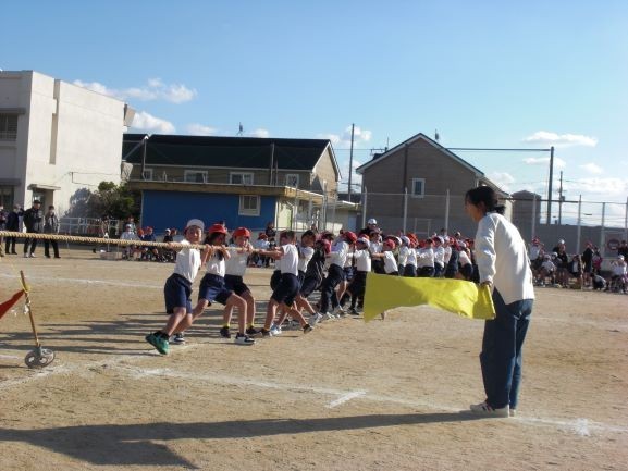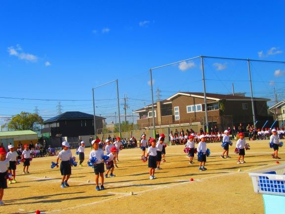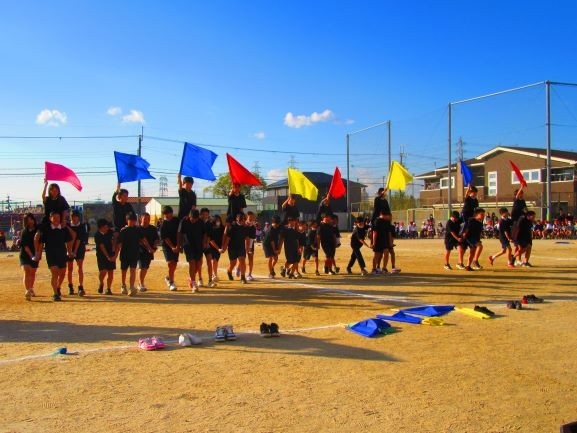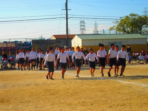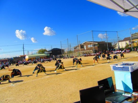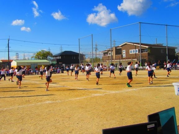 参観に続き、午後は河合小グランドで合同運動会をしました。