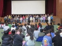 全校が体育館に集まり、「水の色の変化」「空気の流れ」など面白おかしく、それでいて科学への扉を開く大変興味深い時間でした。