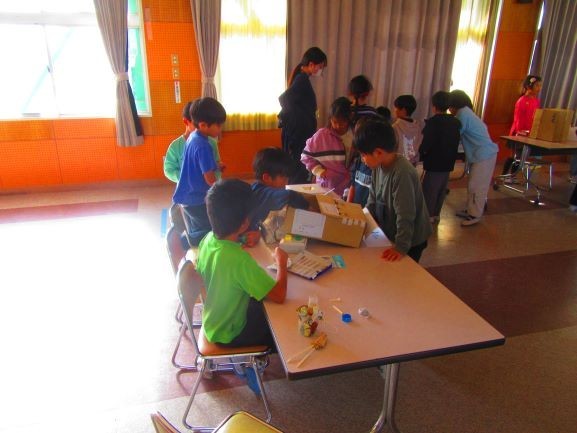 河合小との交流(2年生) 公開日 2025/11/28 更新日 2025/11/28 校長より 昨日は河合小で、、今日は松西小で2年生が2日連続交流をしました。(写真は今日の交流時の様子です)生活科でつくったおもちゃをお互いに披露し、それを使って遊んでもらいました。遊び方を教え合うなど、仲良く遊ぶ姿がたくさんありました。