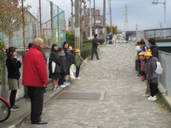 今朝は松原中学校の校長先生、生徒指導の先生、生徒会の人も来てくれました。