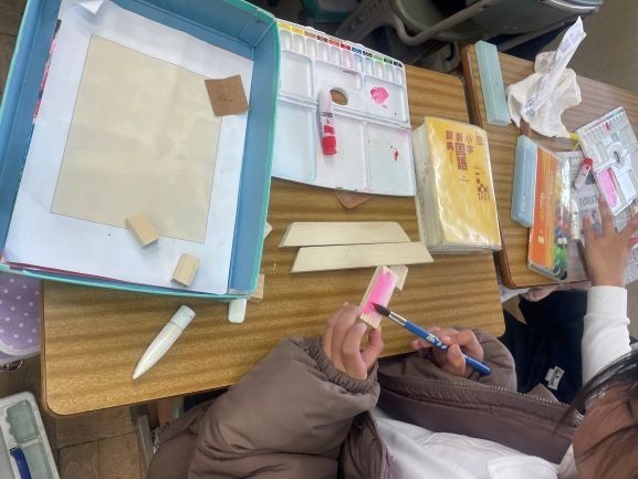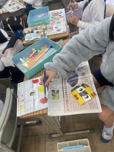 今日は3学期から4年生の図工を教えていただいている東山先生の授業を見に行きました。