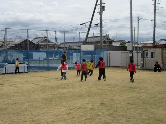 準備体操、ウォームアップのあとはゴールを使っての練習、試合と進んでいきました。