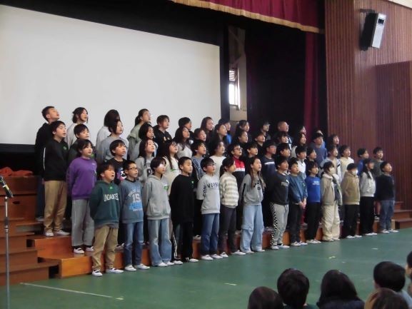 交流音楽会 公開日 2026/03/05 更新日 2026/03/05 校長より 本校で、交流音楽会を開催しました。両校の児童が一緒に歌うことを大切にし、この日に向けて練習を重ねた成果を子どもたちは発揮してくれたようです。合唱するためには心を一つにしなければ心に響く音は出ません。今日の経験が、4月からの学校生活に生きていくことを願っています。 +3