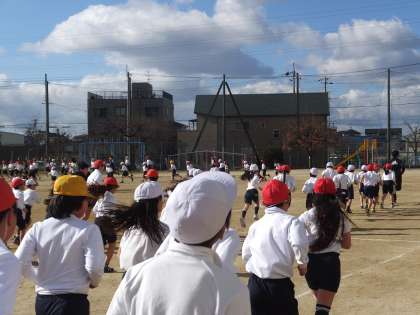 マラソン練習開始 公開日 2017/12/13 更新日 2017/12/12 学校行事 12月12日(火)大なわ記録会が終わると、次は2月9日のマラソン大会に向けて、全学年で、20分休みのマラソン練習が始まりました。冬の寒さに負けず、半そでで走る人もいます。