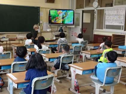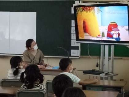 いっぽんみちをあるいていると、ばばあちゃんのすいかのたね、かものはしのわすれもの などを読んでいただきました。