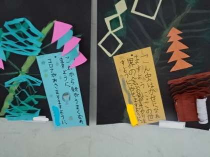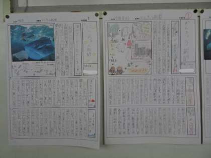 7月9日(金) 3年、4年作品 公開日 2021/07/09 更新日 2021/07/09 校長より 3年生は、七夕にちなんだ作品です。 4年生は、社会で学んだ環境についてを新聞にまとめました。プラスチックごみを減らしたいですね。