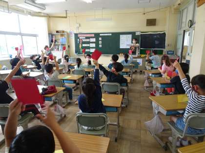 本日の給食に使われている食材が、赤・黄・緑 のどれになるのかを考えました。