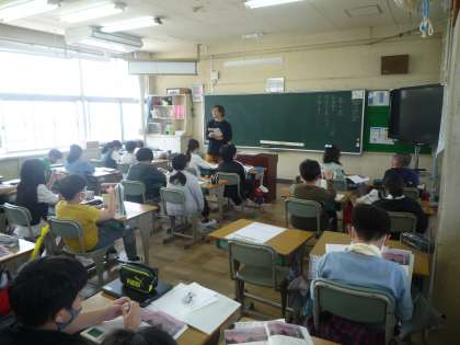5年生教室では、季節の言葉「春の空」の学習をしています。