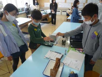 試験管の中が紫色にかわったよ 公開日 2023/05/10 更新日 2023/05/10 校長より 6年生は理科の実験をしています。 試験管の中の液体が紫色になっています。 「どうしてこんな色になったの?」 さすが6年生です。説明がわかりやすいこと。