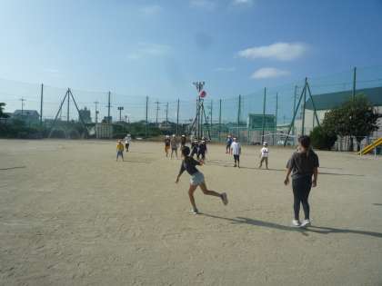 運動場が使える朝必ず行われているのが、学年を超えたドッジボール大会です。みんな笑顔です。