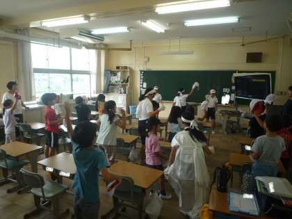 1・2年生も元気いっぱい声をだしています。こうして最後の早朝応援練習が終わりました。それぞれ工夫されていて楽しい応援が行われると思います。お楽しみに。