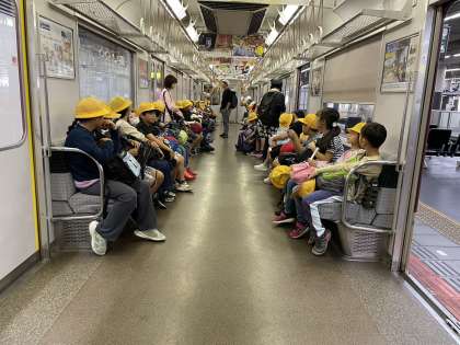 あべの橋駅 全員座れました!! 高見ノ里まで、あと少し。