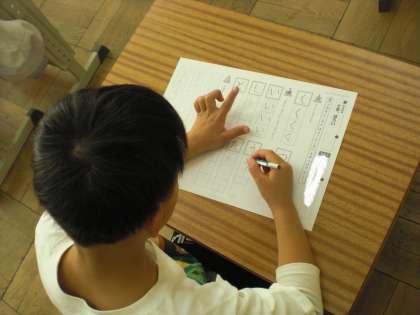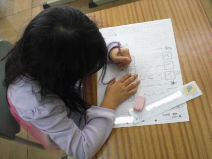 ひらがなを練習しています。ゆっくりゆっくり。 丁寧に練習しています。