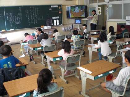 1年生も読み聞かせです。とても集中して聞いています。