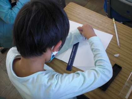 コンパスを使って円を描いています。 綺麗な円を描こうと一生懸命です。