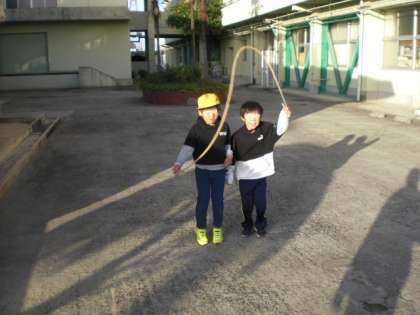2年生 縄跳び 公開日 2023/12/08 更新日 2023/12/08 校長より 二人仲良く手つなぎ前回しをしています。二人の息がぴったり合わないとなかなかできません。 できてます二人前回し。ナイスコンビネーション。