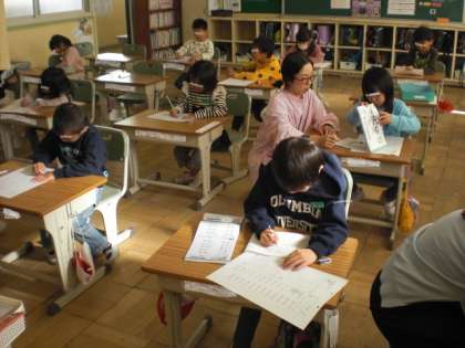 1年生の4時間目は、足し算をしています。 足し算頑張っています。
