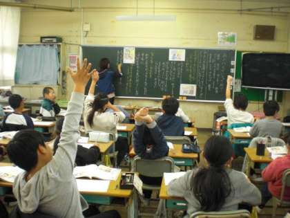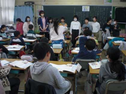 5時間目の4年生の道徳では、雨のバス停留所でのエピソードから、みんなが気持ちよく過ごすためにどんなことが大切か話し合っています。