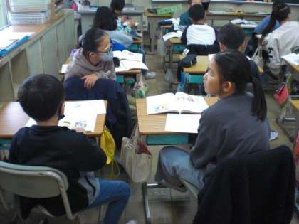 それぞれの場面で、自分や人はどう思うかを個人や班で話し合っています。