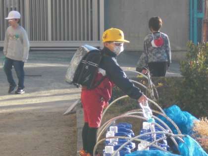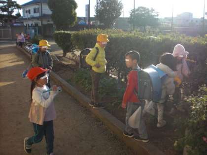 1年生は、元気に登校しています。 チューリップにもしっかり水をあげています。