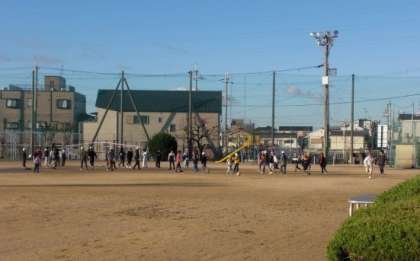 朝の運動場では、学年を超えたドッチボールをしています。だんだん人数が増えてきています。 先生と元気に走っています。