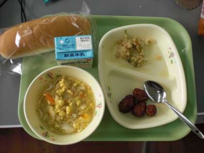 今日は、「ミートボールのケチャップソース」「ツナサラダ」「かきたまスープ」です。 ミートボール美味しいと笑顔で食べてます。