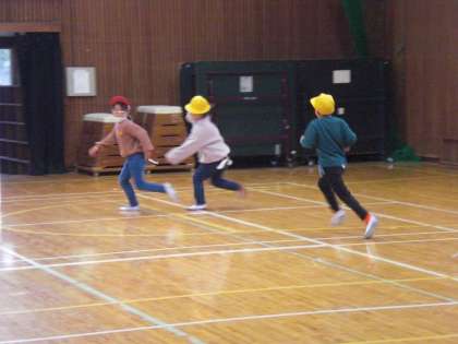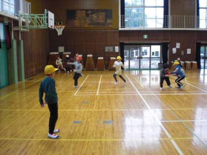2年生は、勉強の後に体育館で「しっぽとり」をしました。