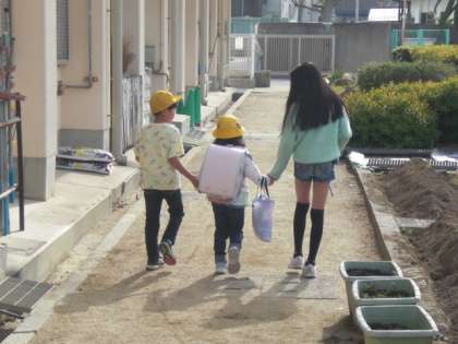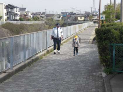 あいさつもしっかりできています。上級生と手を繋いで登校。警察の人と少し話して元気に登校。安全管理委員さんと話してからの登校。それぞれ楽しく登校中です。