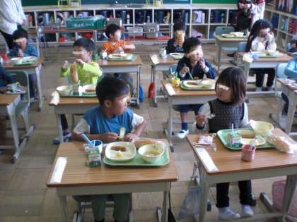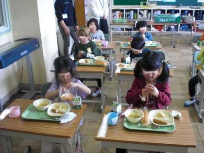今日のメニューは、ツナポテト、フランクフルトのケチャップソース、レタスのスープ、コッペパン、牛乳です。