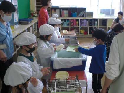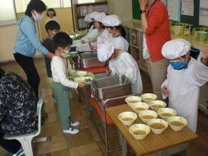 給食盛りつけもしっかりできます。 すごいでしょう。