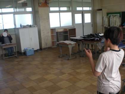 保健室の先生から、視力検査についてのお話をきいて検査をしています。