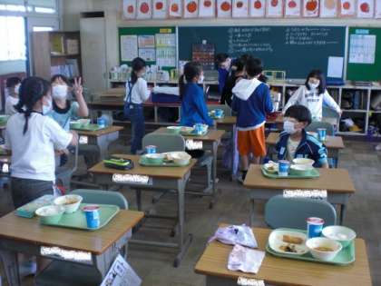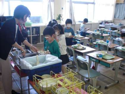一度配られた給食と自分のお腹と相談して、増やしたり減らしたりしています。