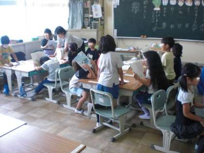 チームで大きなかぶの読み合わせをしています。 大きな声で役割を決めてしっかり読んでいます。