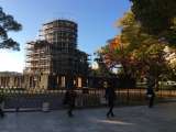 路面電車を降りると原爆ドームです。ただ今保存工事中です。