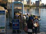 松大汽船のフェリーに乗り、宮島口駅へと向かいます。そこからJRで広島駅へと向かい...