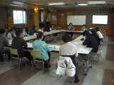 ハードル走を勉強しています。 友だちの良いところを発表し合っています。