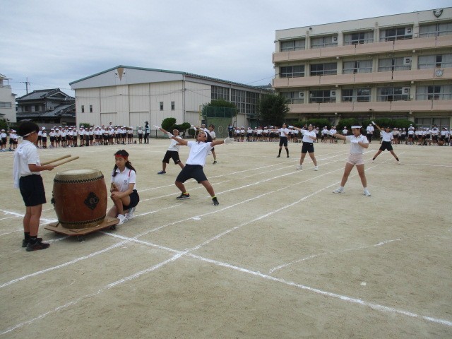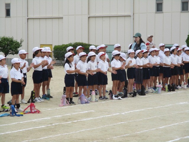 応援団の動きに合わせて、「ふれっ、ふれっ、〇組!」とか「勝つぞ!勝つぞ!〇組!」、「それ!」とか「やー!」とか組全員で応援します!
