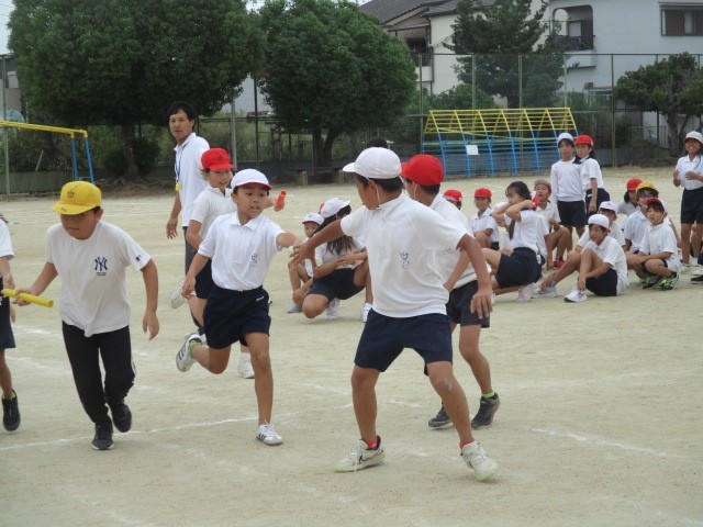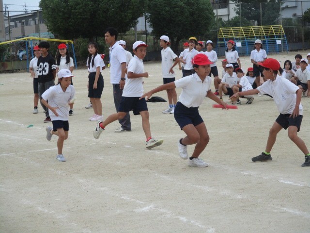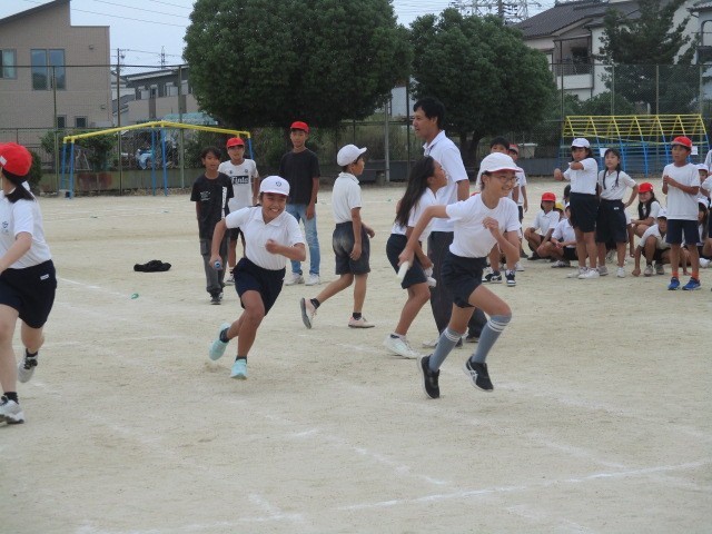 今日は、実際に走ってみてバトンパスの練習です。なかなかリードするのが難しくその場でバトンをもらっていましたが、もらったら全力で走っていました。