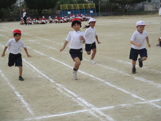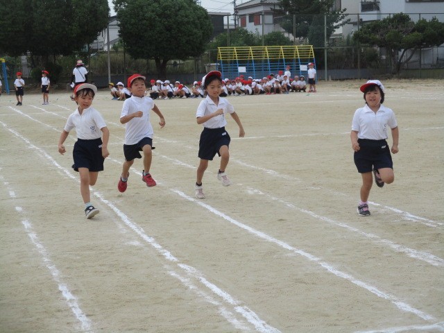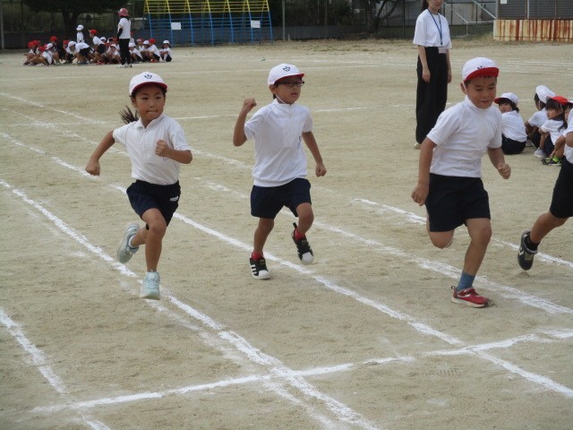もうすぐ、初めての体育大会の1年生。今日は、徒競走の練習をしました。