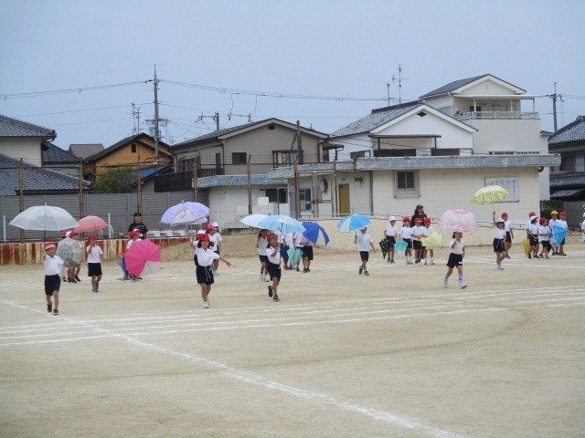 1年生は、傘を使ったダンスを披露します。とっても可愛いです!