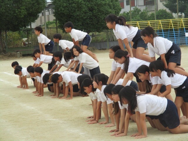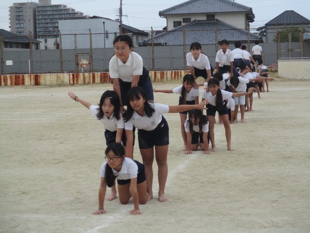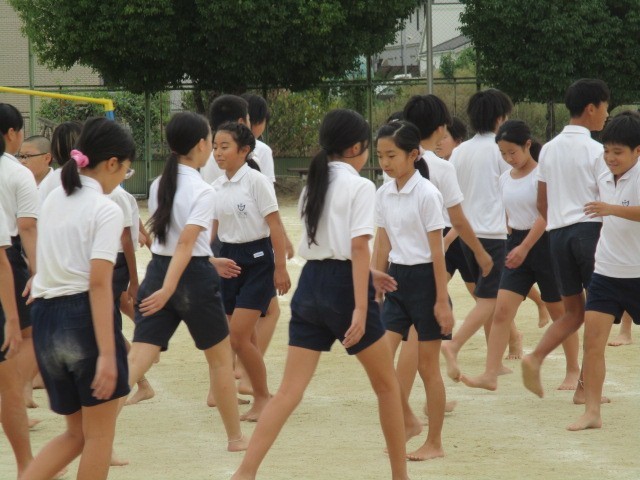 6年生は、行進も演技の一つです。一人技から始まって、全員の心と体を一つにした演技ウェーブを堪能してください。