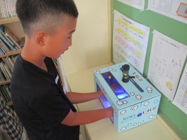 保健部では、どのようにするときれいに手を洗えるかを考えさせるため、どのくらいきれいになっているかを目で見てわかる装置に手をかざして、何回も手洗いをしに行っていました。