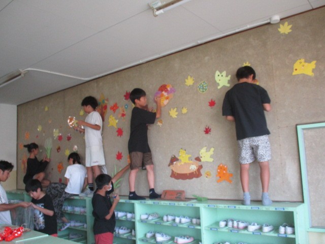 掲示部掲示係では、靴箱の掲示板を秋にしました。