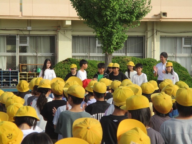 今日の児童朝会では、校長から昨日のPTA親善バレーボール大会のこと、知らない人に声を掛けられた時の対応、勉強の秋ということで必ず話し手を見て話を聞くこと、最後に、自主学習ノートの表彰を行いました。