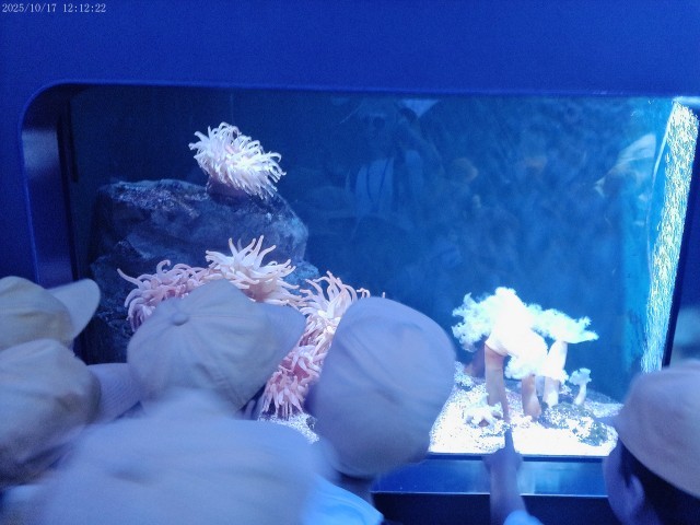 海遊館は、「スイミー」の世界で溢れていました!イワシの魚群を見たとき、「スイミーや!」と誰かが叫ぶと、みんな「ほんまや。スイミーや!」と言っていました。そして、イソギンチャクを見たときには、「風にゆれる桃色のヤシの木みたいなイソギンチャク」と言っていました。ジンベイザメも見ることができて最高の一日でした!