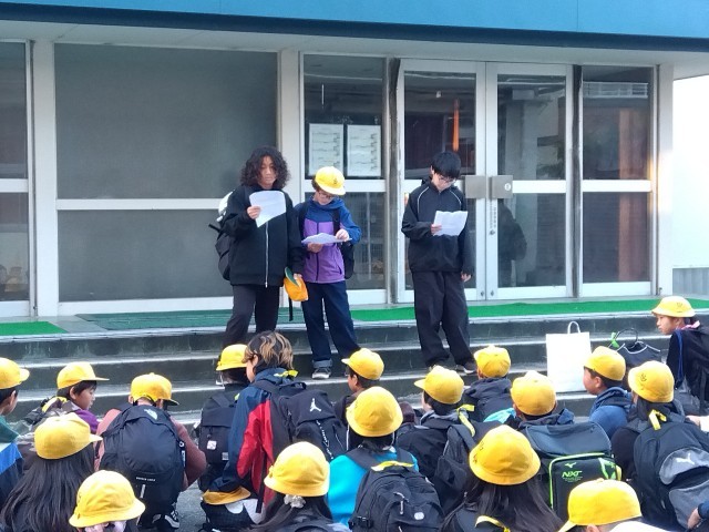 おはようございます。今、学校で出発式をしてバスに乗り込みました。見送りに来ていただいた保護者の方々ありがとうございました!
