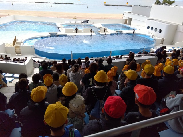 予定通り須磨シーワールドに着いてイルカショーを見ています。