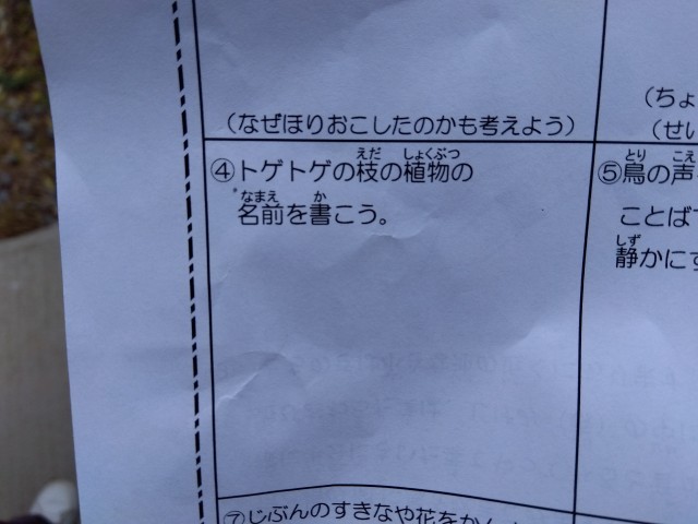 ネイチヤーヒンゴをしています!トゲトゲの枝の植物の名前、分かりますか??また5年生に聞いてみてくださいね!
